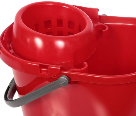 - The large capacity of the Mop Bucket Oval 15 Ltr allows for efficient cleaning of large areas without the need for frequent refilling, saving time and effort. The made-in-Italy product is constructed with high-quality plastic. The body is made from durable materials and is sturdy enough to withstand everyday use.