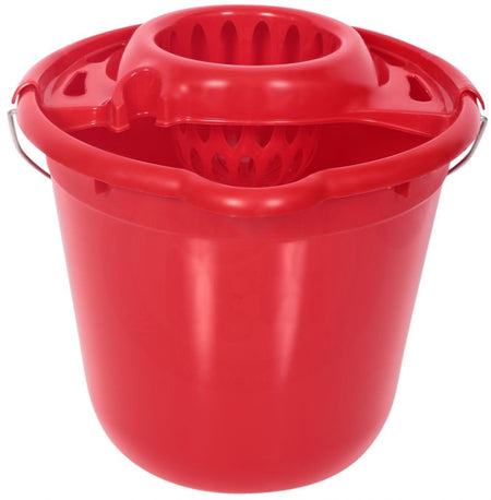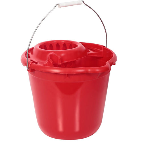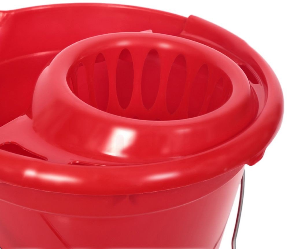 - The Plastic Mop Bucket comes with a sturdy metal handle and is available in a bright red color, adding a touch of style to its functional design.