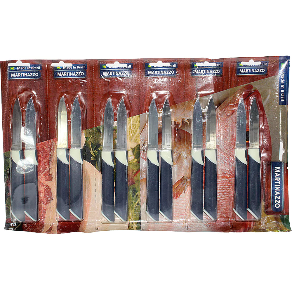 Martinazzo Paring Knife Blue Plastic Handle 3", 12 Pcs Card 21353/02