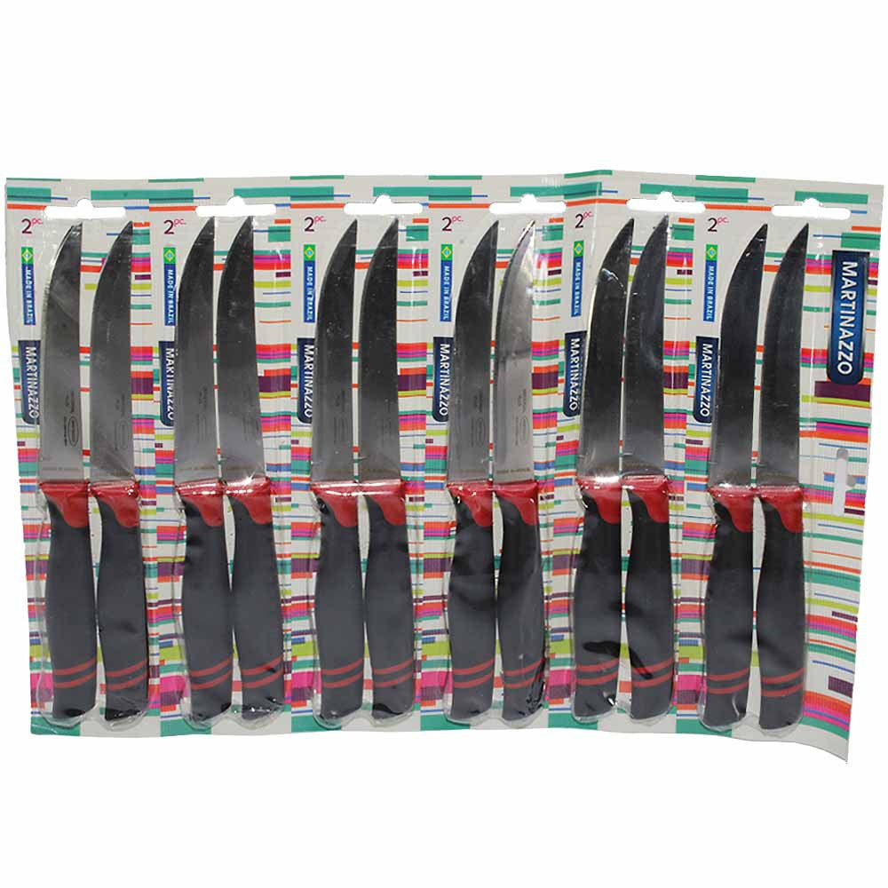 Martinazzo Plain Edge Steak Knife Black Plastic Handle 5", 12 Pcs Card 21536/05