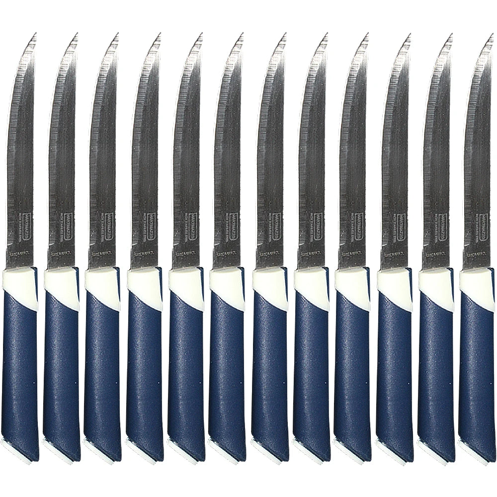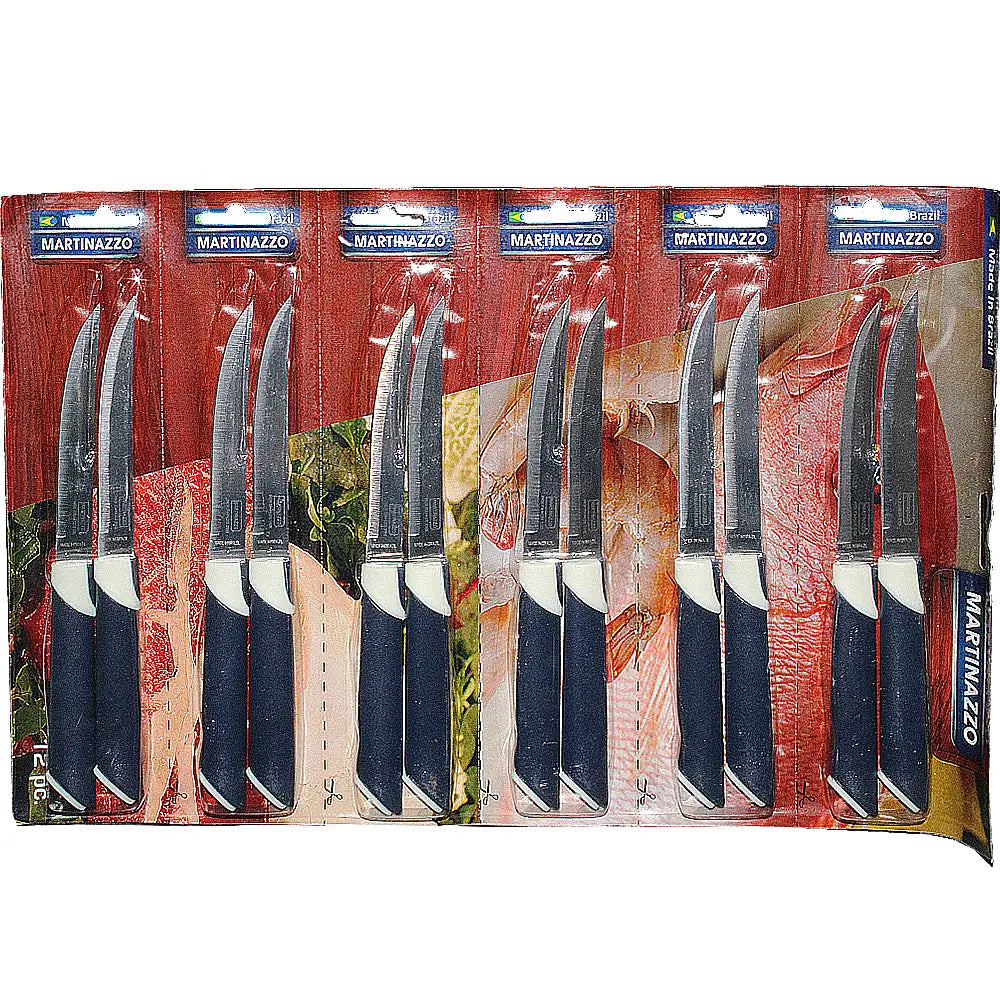 Martinazzo Plain Edge Steak Knife Blue Plastic Handle 5", 12 Pcs Card 21336/02