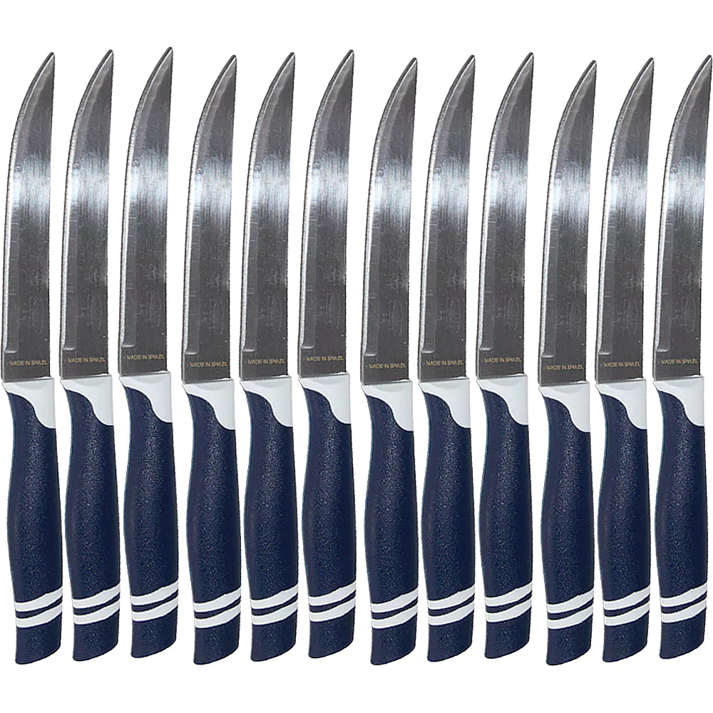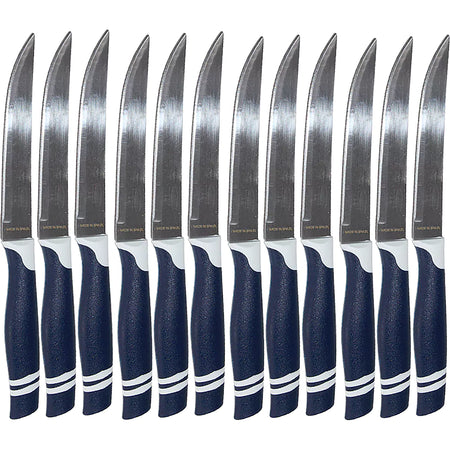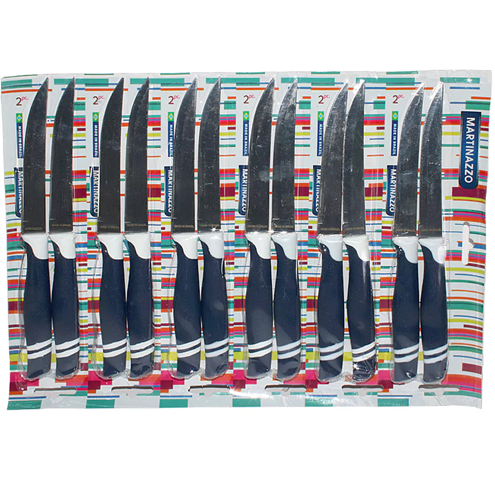 Martinazzo Plain Edge Steak Knife Blue Plastic Handle 5", 12 Pcs Card 21536/02