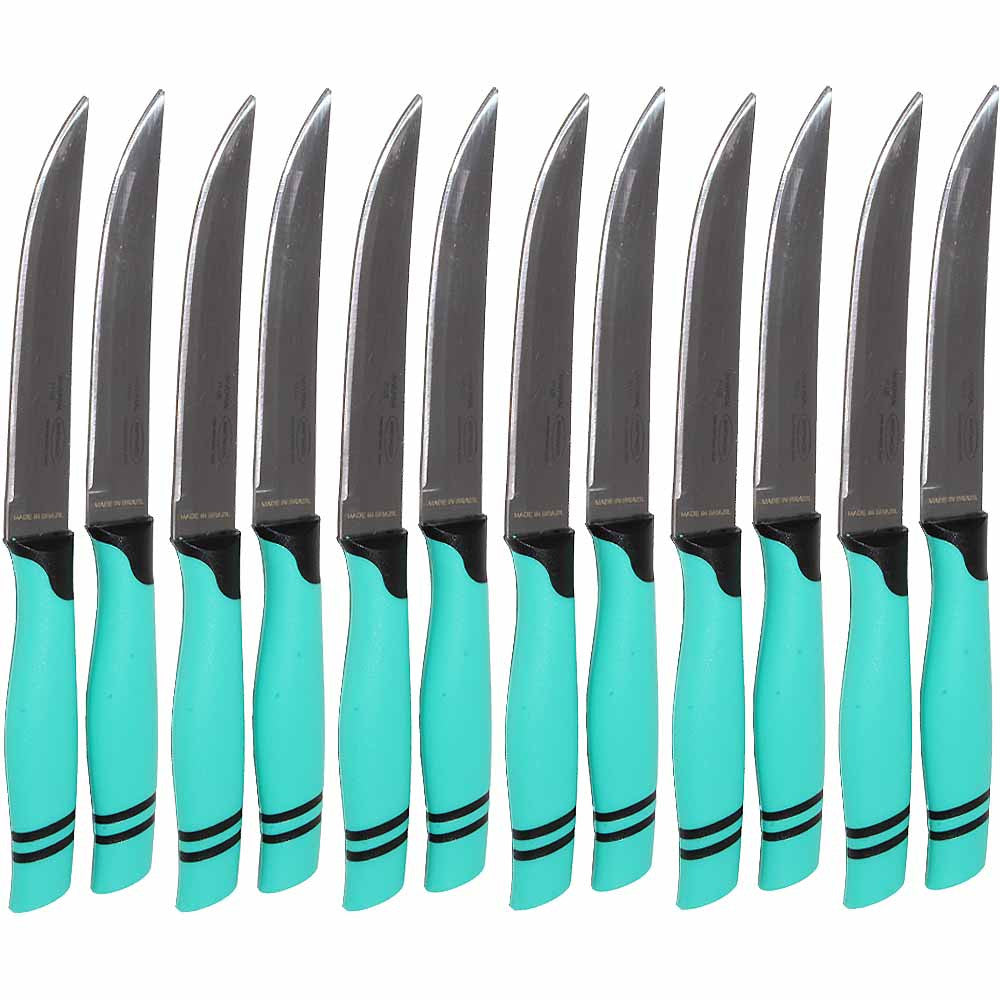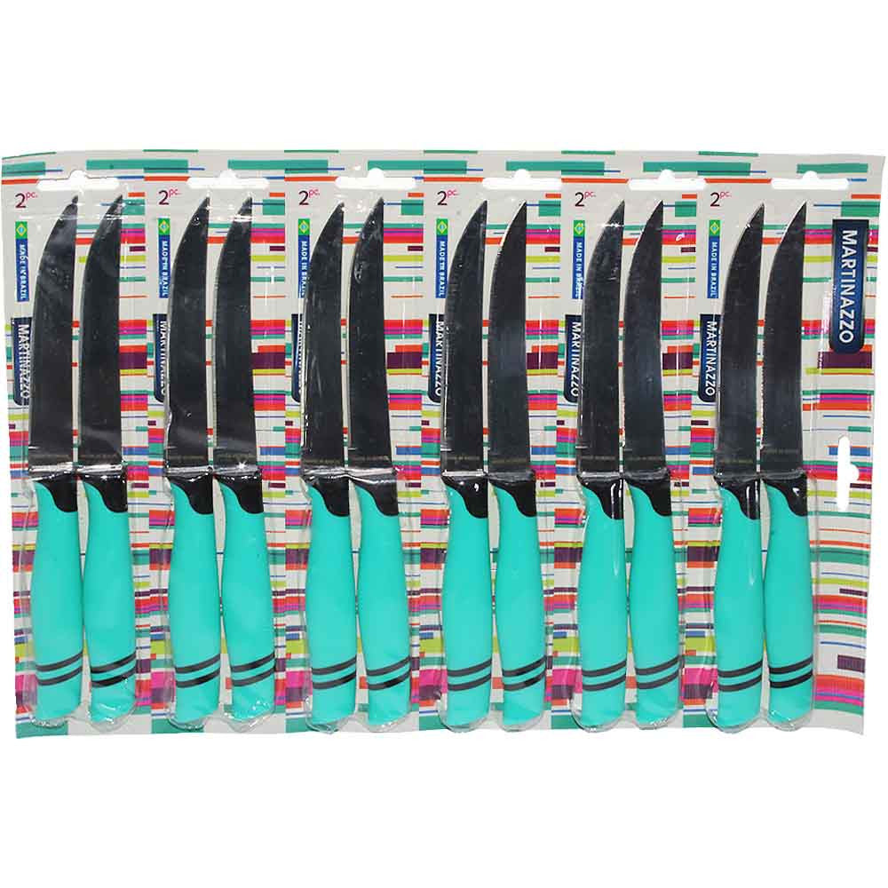 Martinazzo Plain Edge Steak Knife Light Blue Plastic Handle 5", 12 Pcs Card 21536/13