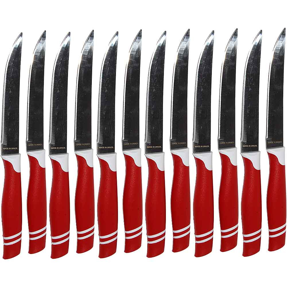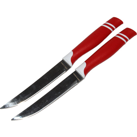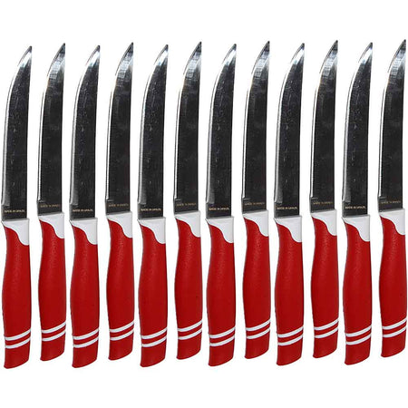 Martinazzo Plain Edge Steak Knife Red Plastic Handle 5", 12 Pcs Card 21536/08