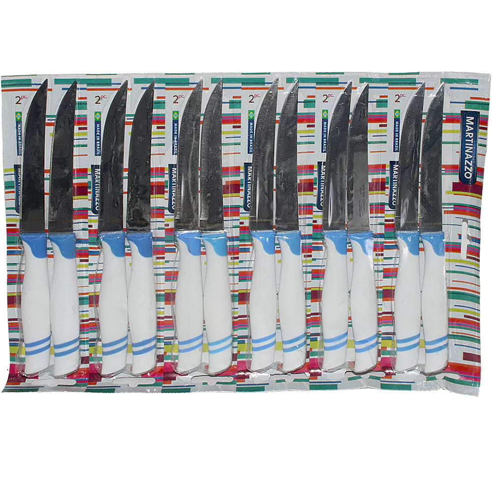 Martinazzo Plain Edge Steak Knife White Plastic Handle 5", 12 Pcs Card 21536/06