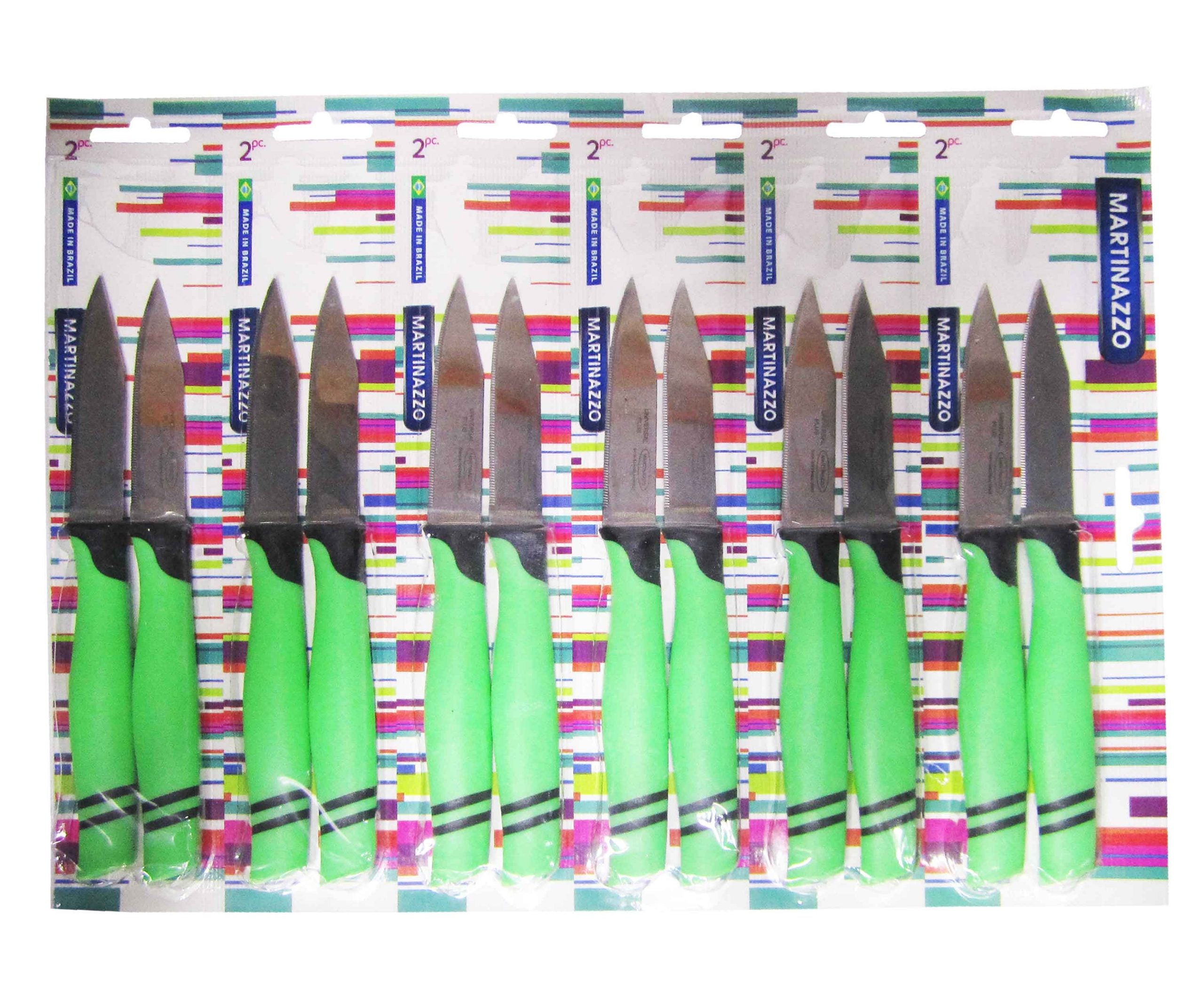 Martinazzo Serrated Paring Knife Green Plastic Handle 3", 12 Pcs Card 21554/03