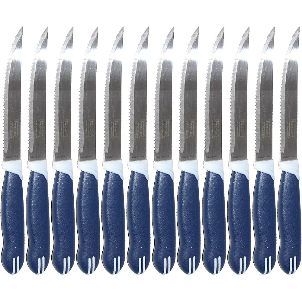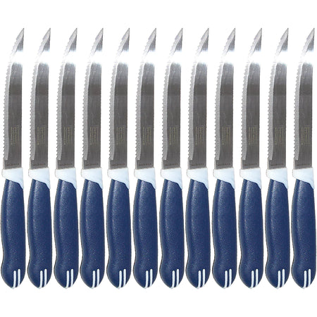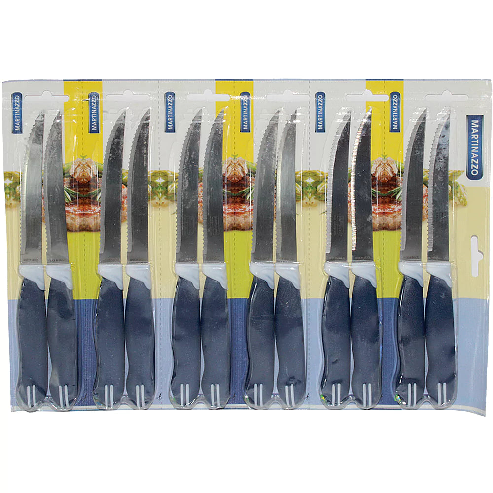 Martinazzo Serrated Steak Knife Blue Plastic Handle 5", 12 Pcs Card 21535/02