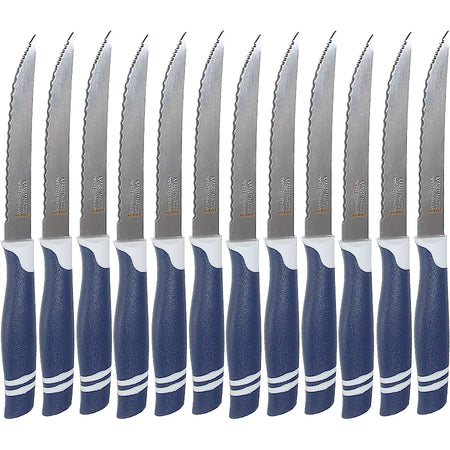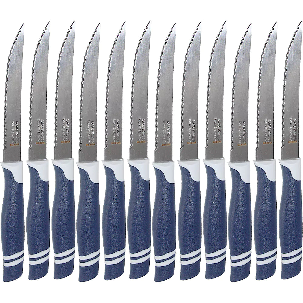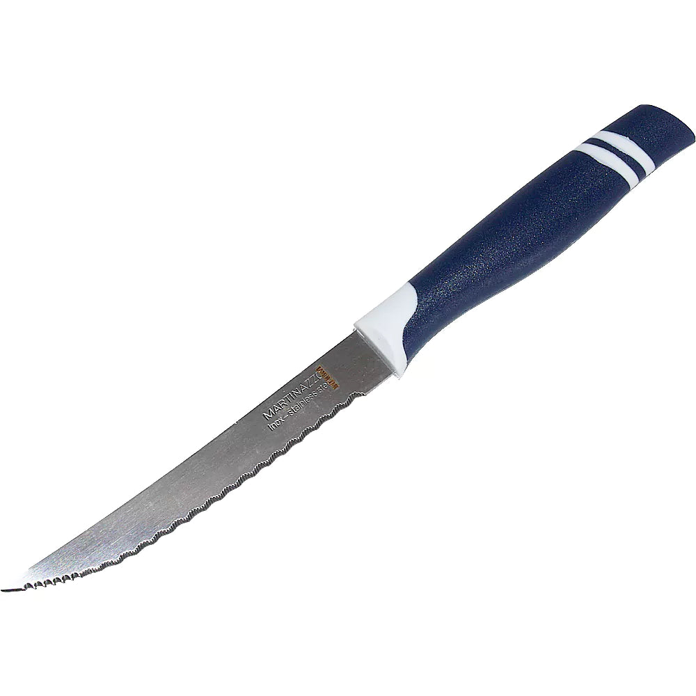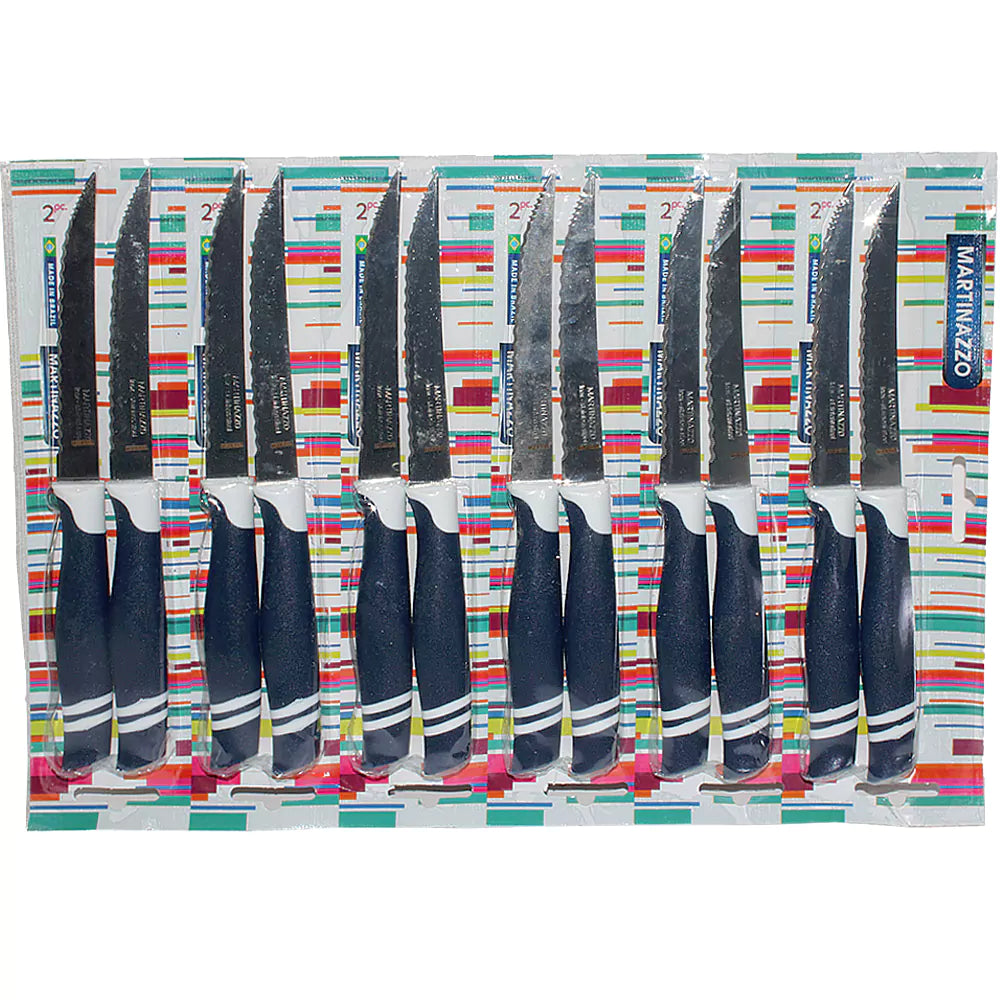 Martinazzo Serrated Steak Knife Blue Plastic Handle 5", 12 Pcs Card 21537/02
