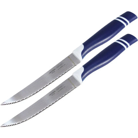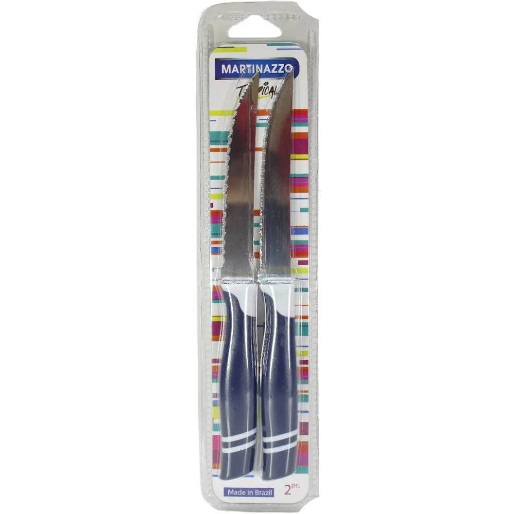 Martinazzo Serrated Steak Knife Blue Plastic Handle 5", 2 Pcs Card 22537/02