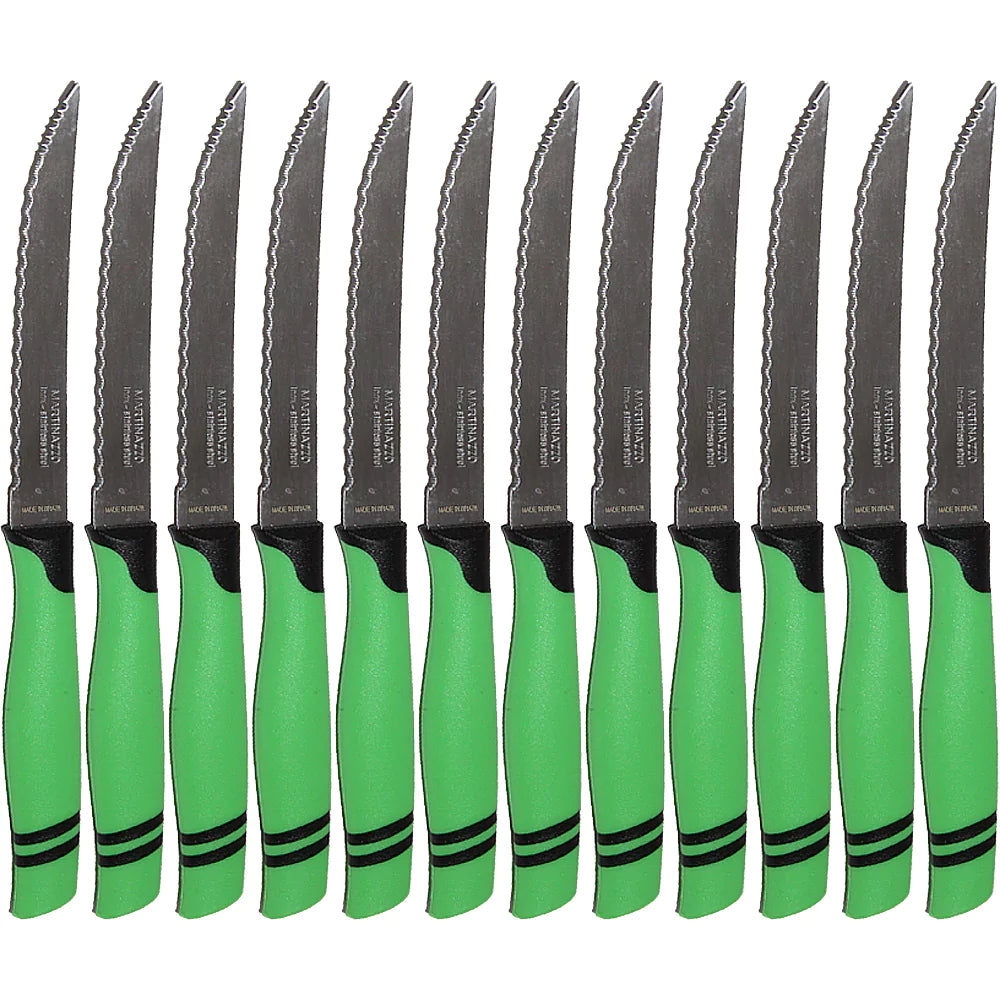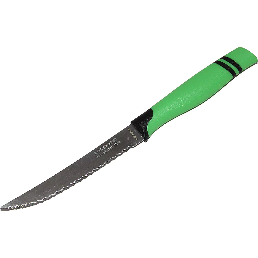 Martinazzo Serrated Steak Knife Green Plastic Handle 5", 12 Pcs Card 21537/03