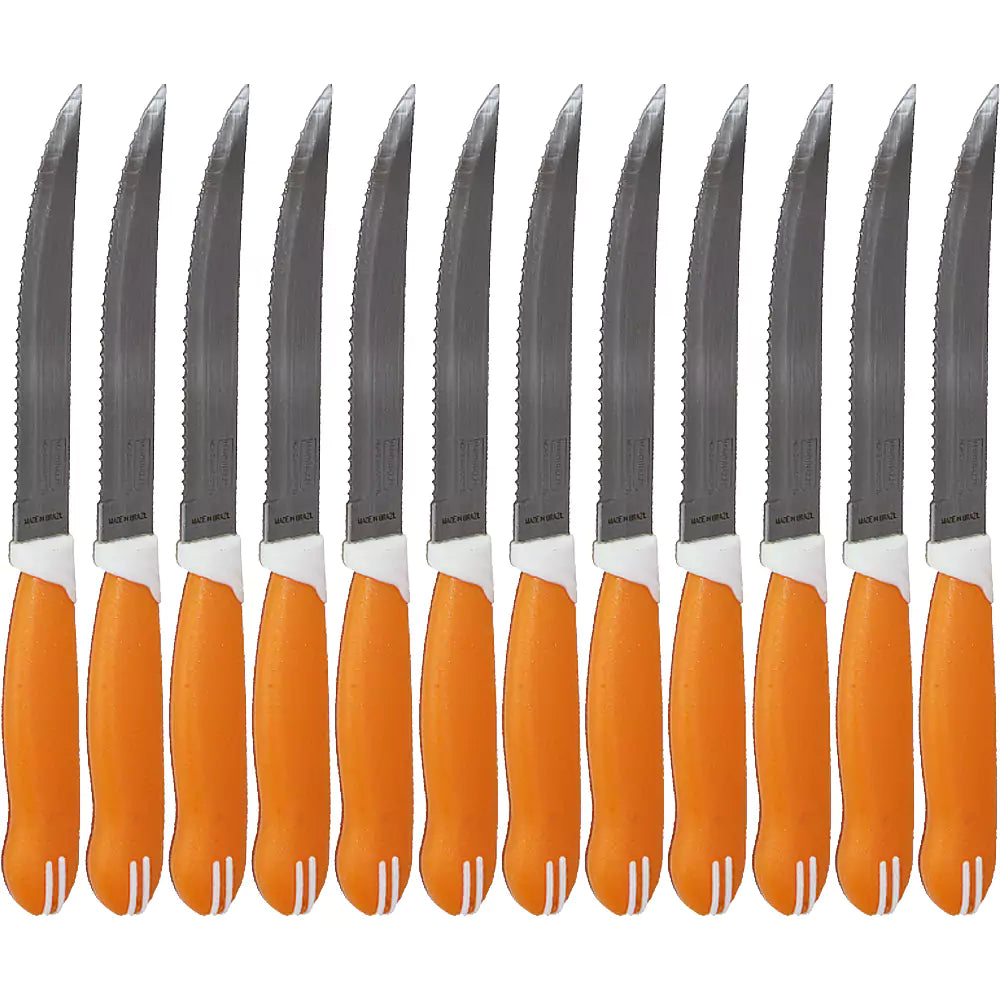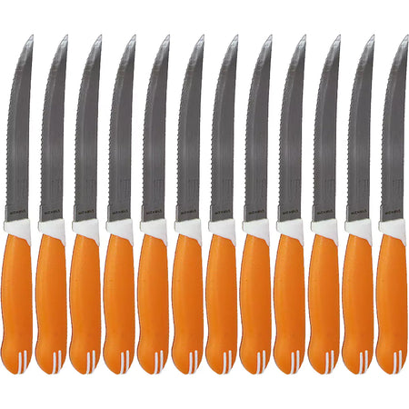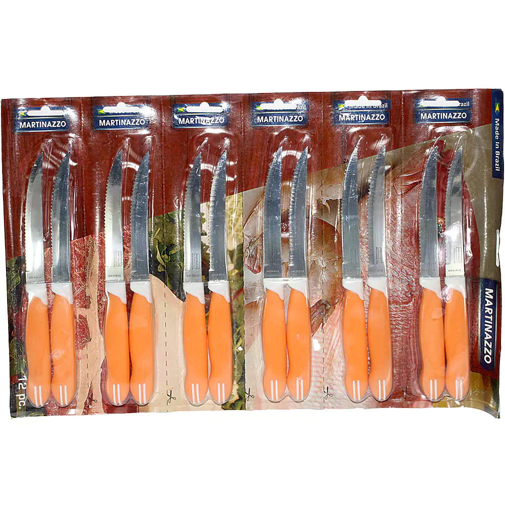 Martinazzo Serrated Steak Knife Orange Plastic Handle 5", 12 Pcs Card 21535/04