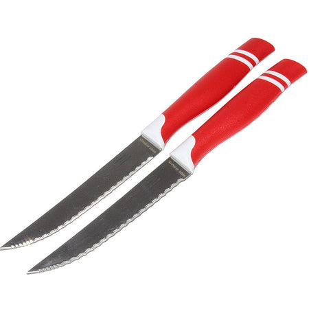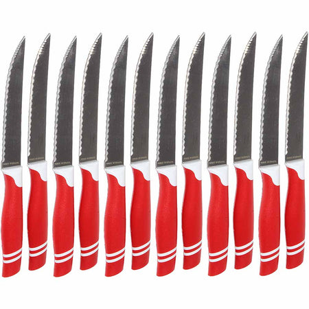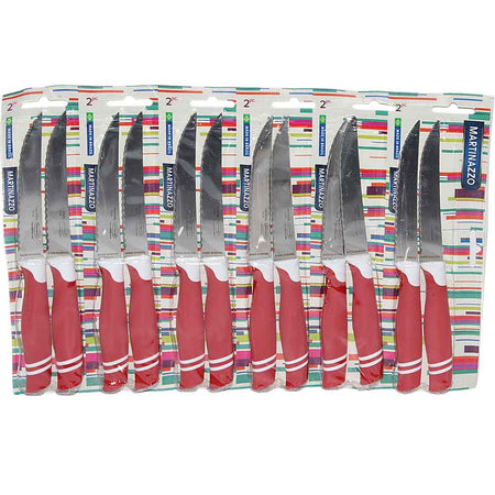 Martinazzo Serrated Steak Knife Red Plastic Handle 5", 12 Pcs Card 21537/08