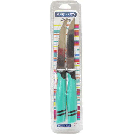 Martinazzo Serrated Steak Knife Sky Blue Plastic Handle 5", 2 Pcs Card 22537/13