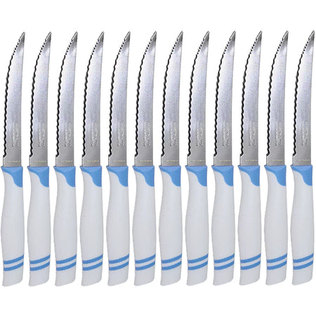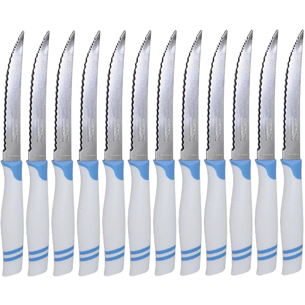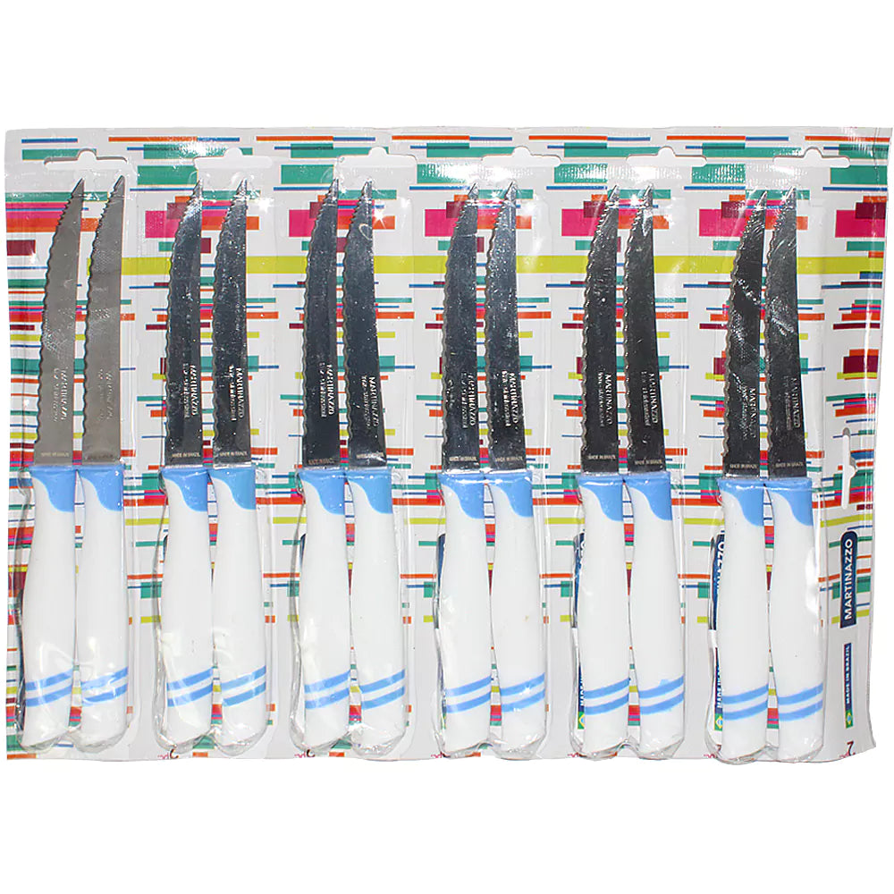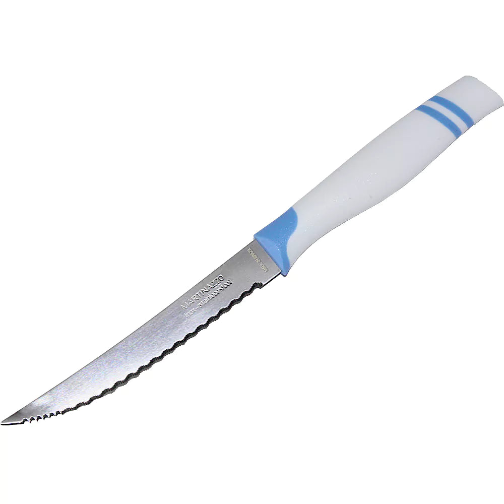 Martinazzo Serrated Steak Knife White Plastic Handle 5", 12 Pcs Card 21537/06