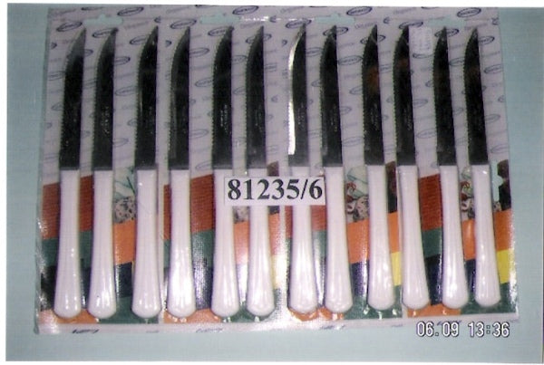 Martinazzo Steak Knife White Plastic Handle 5", 12 Pcs Card 81235/6