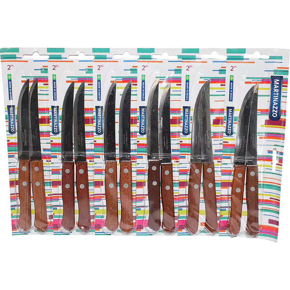 Martinazzo Steak Knife Wooden Handle 5", 12 Pcs Card 31236