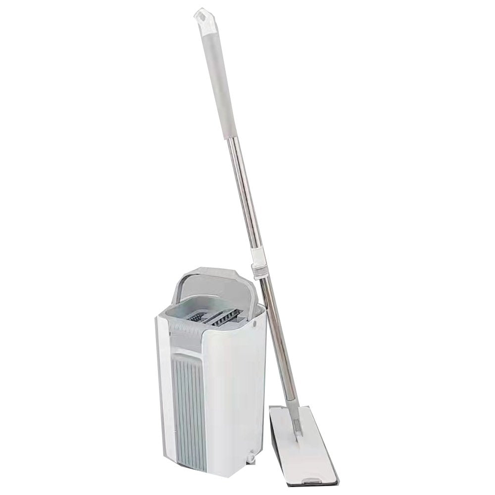 - The mop and bucket set has an innovative, aesthetic design combining functionality and style.