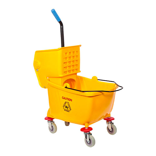 - Mop buckets are designed with high-quality features, including a built-in wringer for easy Mop drying. The 360-rotating wheels and easy grip handle make them simple to maneuver, providing added convenience for cleaning tasks.