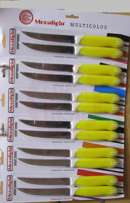 Steak Knife Machine Blade Yellow Handle 12 Pcs Card 91010y