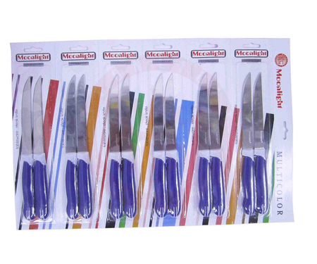 Steak Knife Plain Blade Blue Handle 12 Pcs Card 91009b
