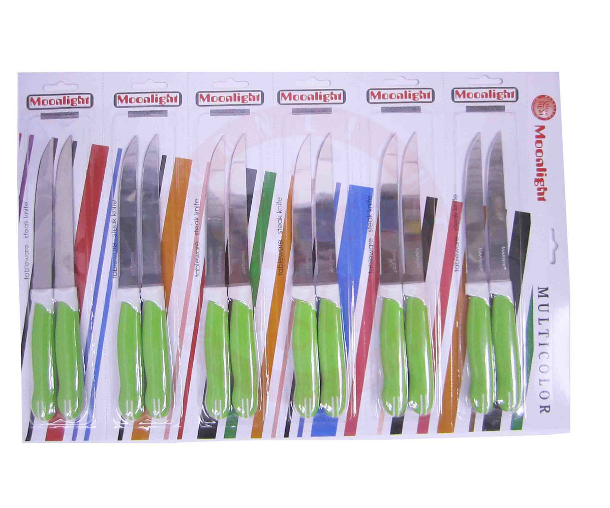 Steak Knife Plain Blade Green Handle 12 Pcs Card 91009g