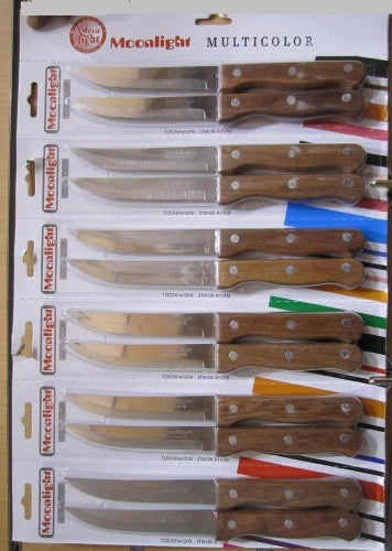 Steak Knife Plain Edge Wooden Handle 5" 12 Pcs Card 91013