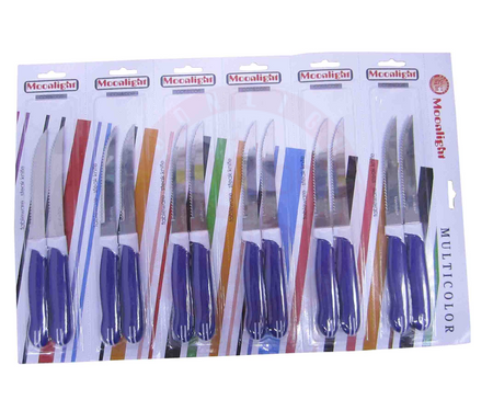 Steak Knife Serrated Blade Blue Handle 12 Pcs Card 91008b