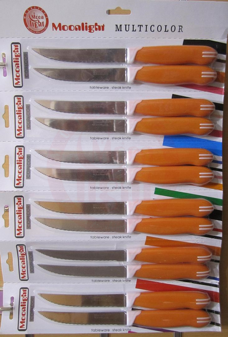 Steak Knife Serrated Blade Orange Handle 12 Pcs Card 91008o