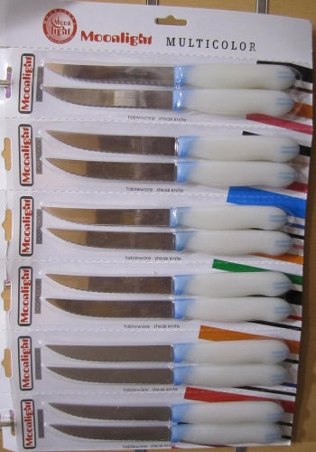 Steak Knife Serrated Blade White Handle 12 Pcs Card 91008w
