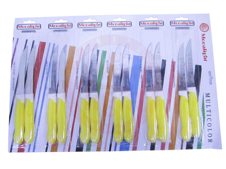 Steak Knife Serrated Blade Yellow Handle 12 Pcs Card 91008y
